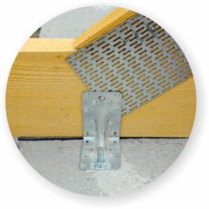 Na vytvorenie pevnej podpery použijeme pevný uholník. Pevná podpera neumožňuje horizontálny posun väzníkov.